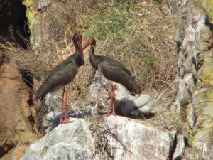 3. Pareja de cigüeñas negras con polluelos